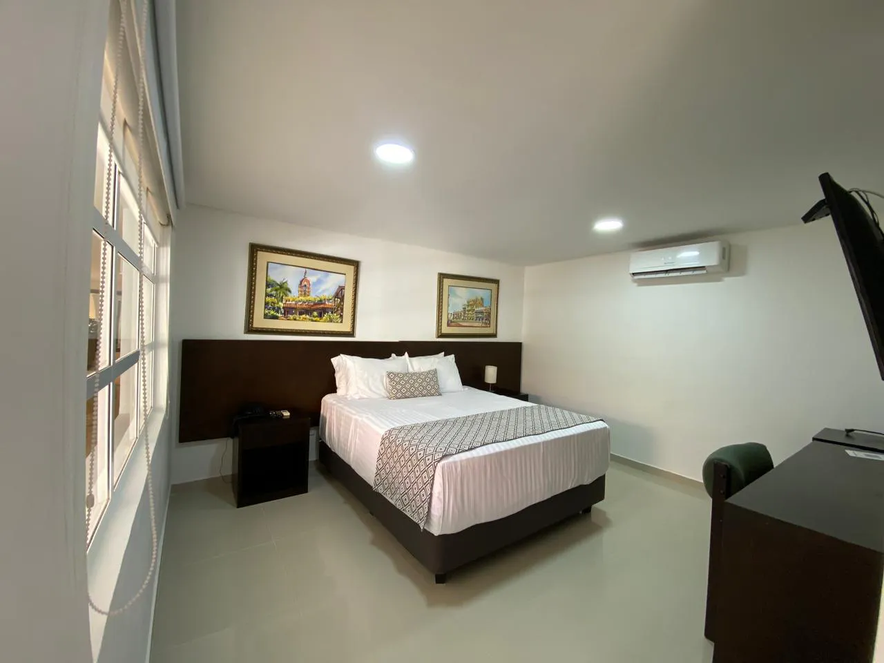 Single room for solo or business travelers. It features a queen-size bed (160 x 190 cm), offering a comfortable rest for one person. It includes a private bathroom, air conditioning, cable TV, a minibar, a work desk, and a safe. The room is 100% non-smoking.
